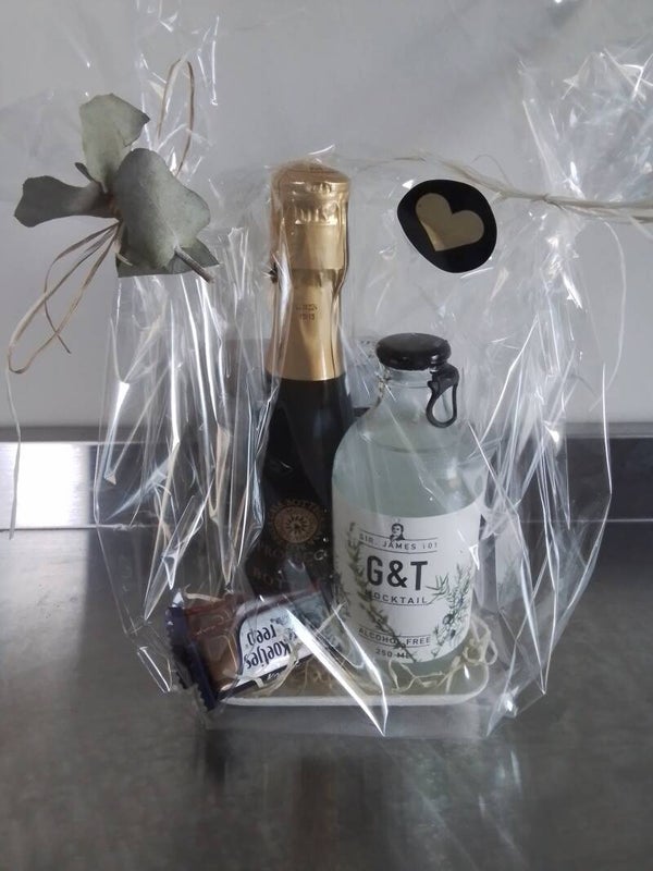 - met 1 flesje cava, 1 flesje mocktail en Koetjesreep